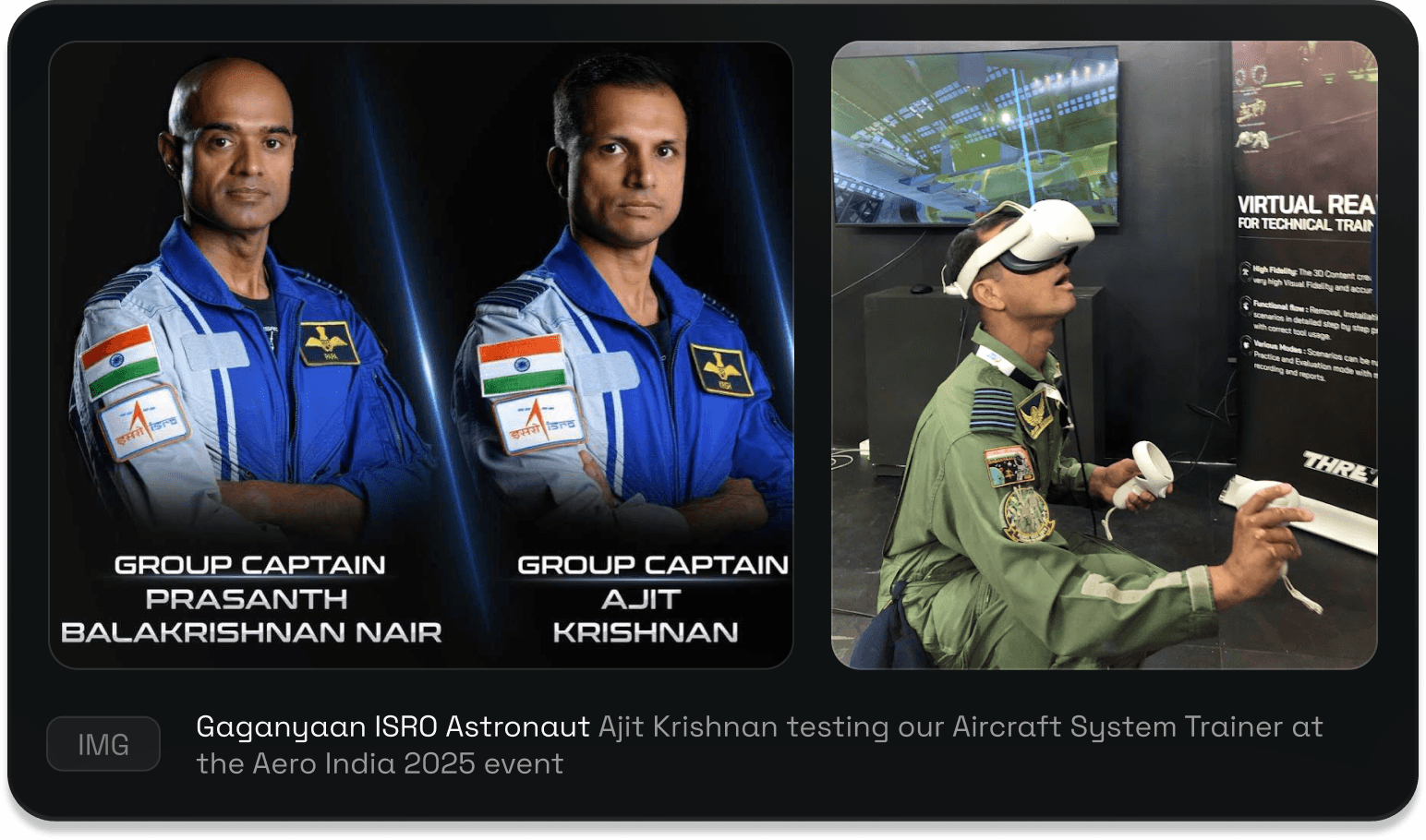 The project was showcased at Aero India 2025, where it was tried by Group Captain Ajit Krishnan, Indian Air Force test pilot and one of the astronauts selected for the Gaganyaan mission.