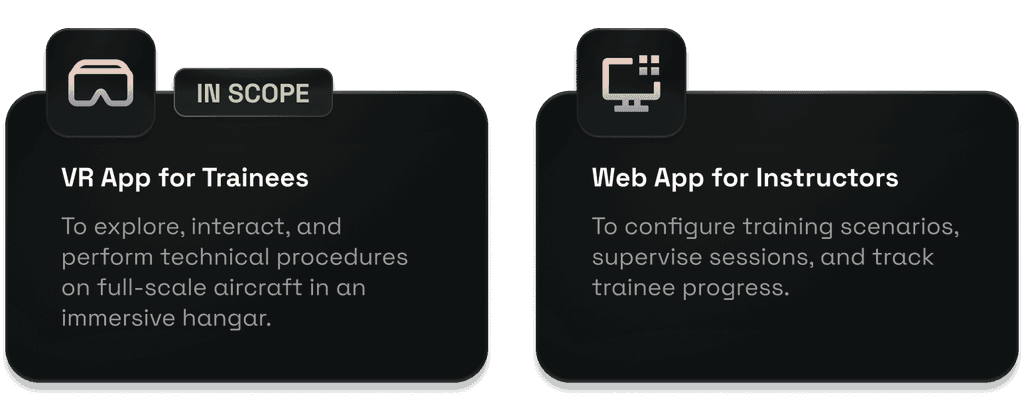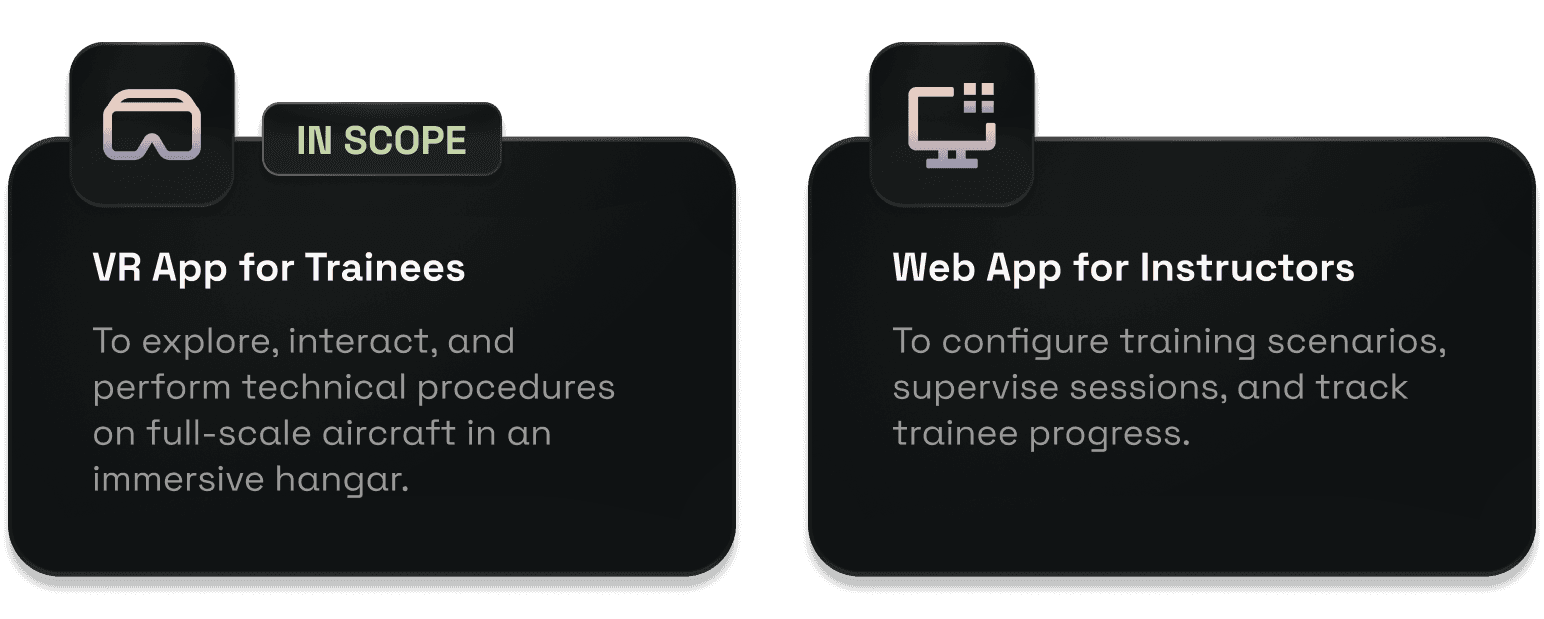 We built two synchronised platforms for two very different users: instructors and trainees, each designed for their unique comfort, workflows, and environment.